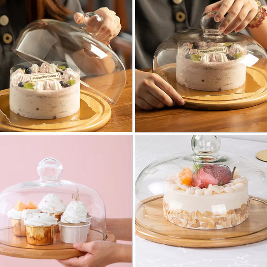 Elegant Glass Dome Cake Stand with Cover – Dessert & Food Display Platter